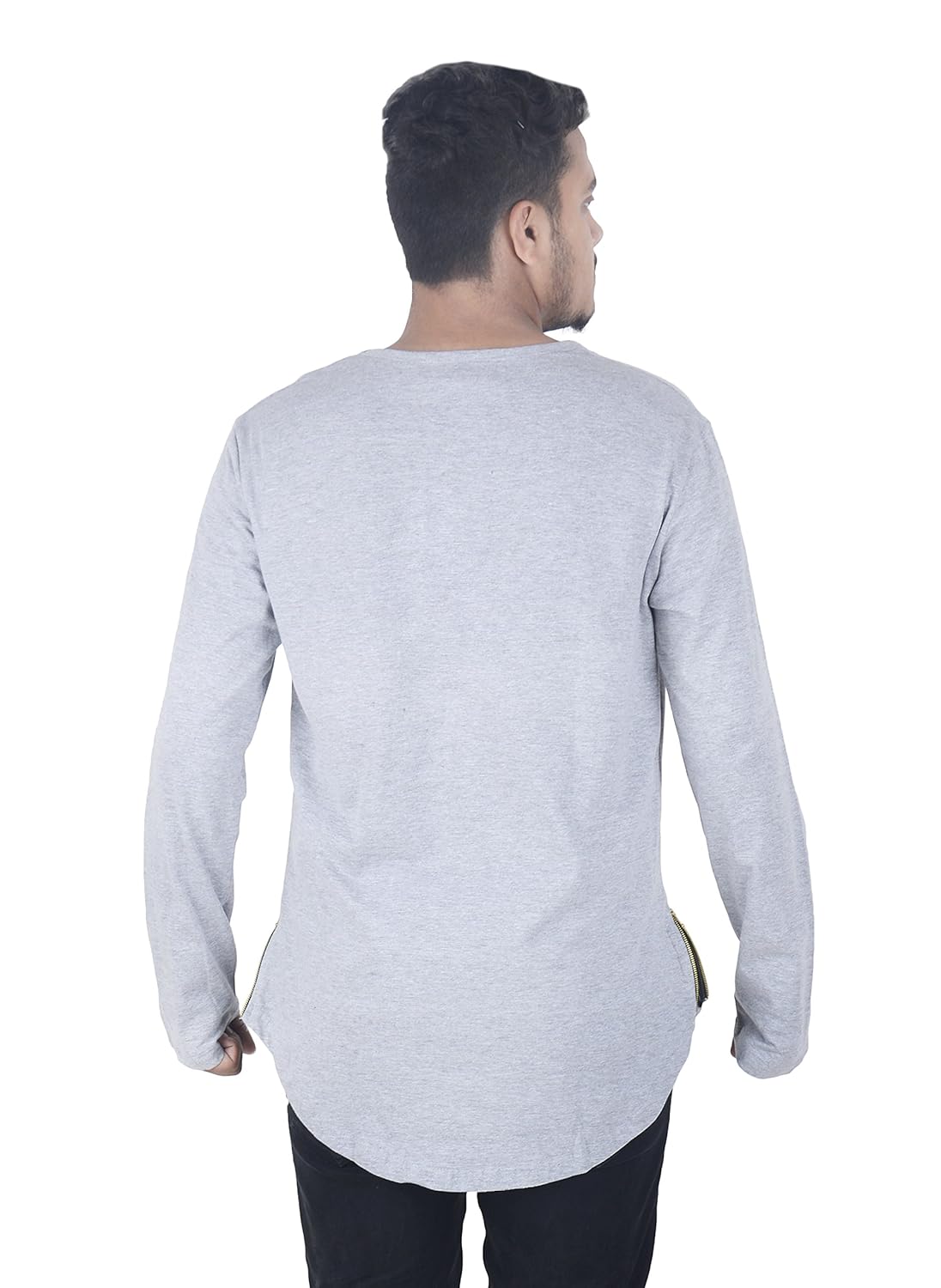 Buy Men S Longline Full Sleeve Apple Cut T Shirt Dark Grey