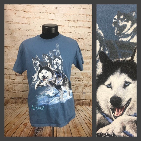 Men S Vintage Alaska Shirt Siberian Husky Wolf T Shirt Etsy