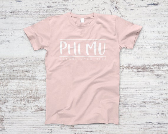 Phi Mu Established Tee Unisex Greek Sorority Shirt Tshirt Tee Etsy